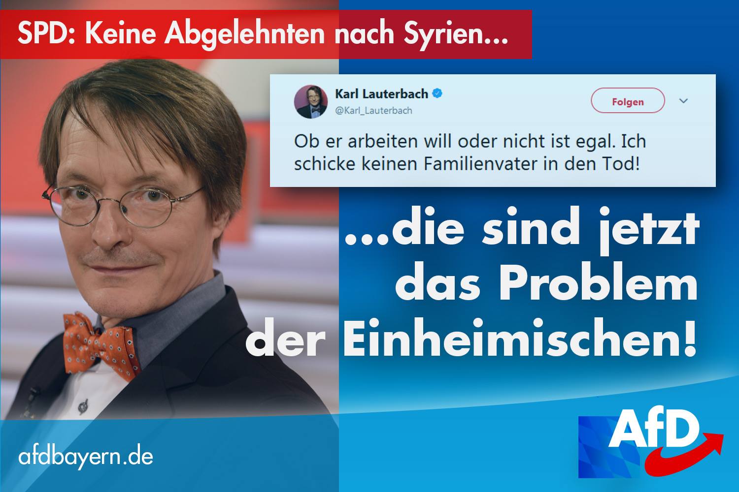Applaus von der AfD. Wie zynisch es ist kaum zu glauben Bundesgesundheitsminister Karl Lauterbach retweeted den Post von Steiniger und schreibt. Lauterbach über AfD. 1 day agoGesundheitsminister Lauterbach will zeigen daß mit ihm im Regierungsflieger Maske getragen wird und macht ein Selfie.